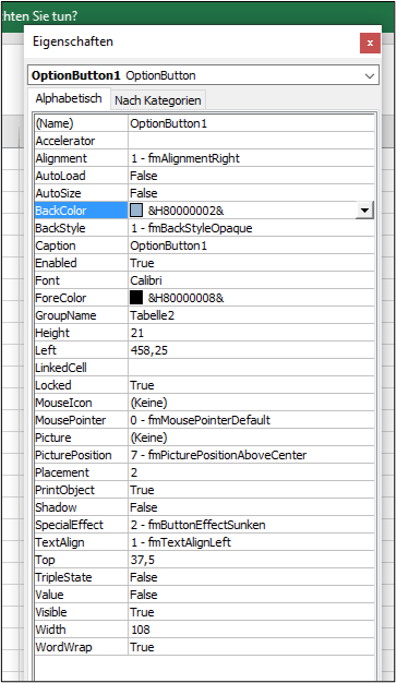 Der OptionButton (Optionsfeld) ist eine Steuerelement aus den ActiveX-Steuerelementen.